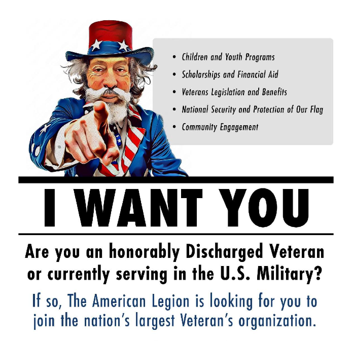 Consistent with the National American Legion, our vision is: "Veterans Strengthening America"